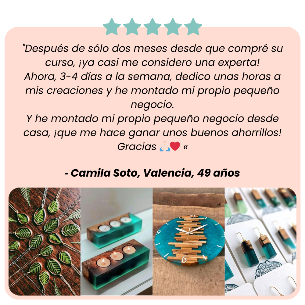 Dirigido a cualquier persona que quiera montar un negocio desde cero,aprendiendo a crear objetos y accesorios de resina desde la comodidad de su casa de una forma sencilla, rápida y súper barata