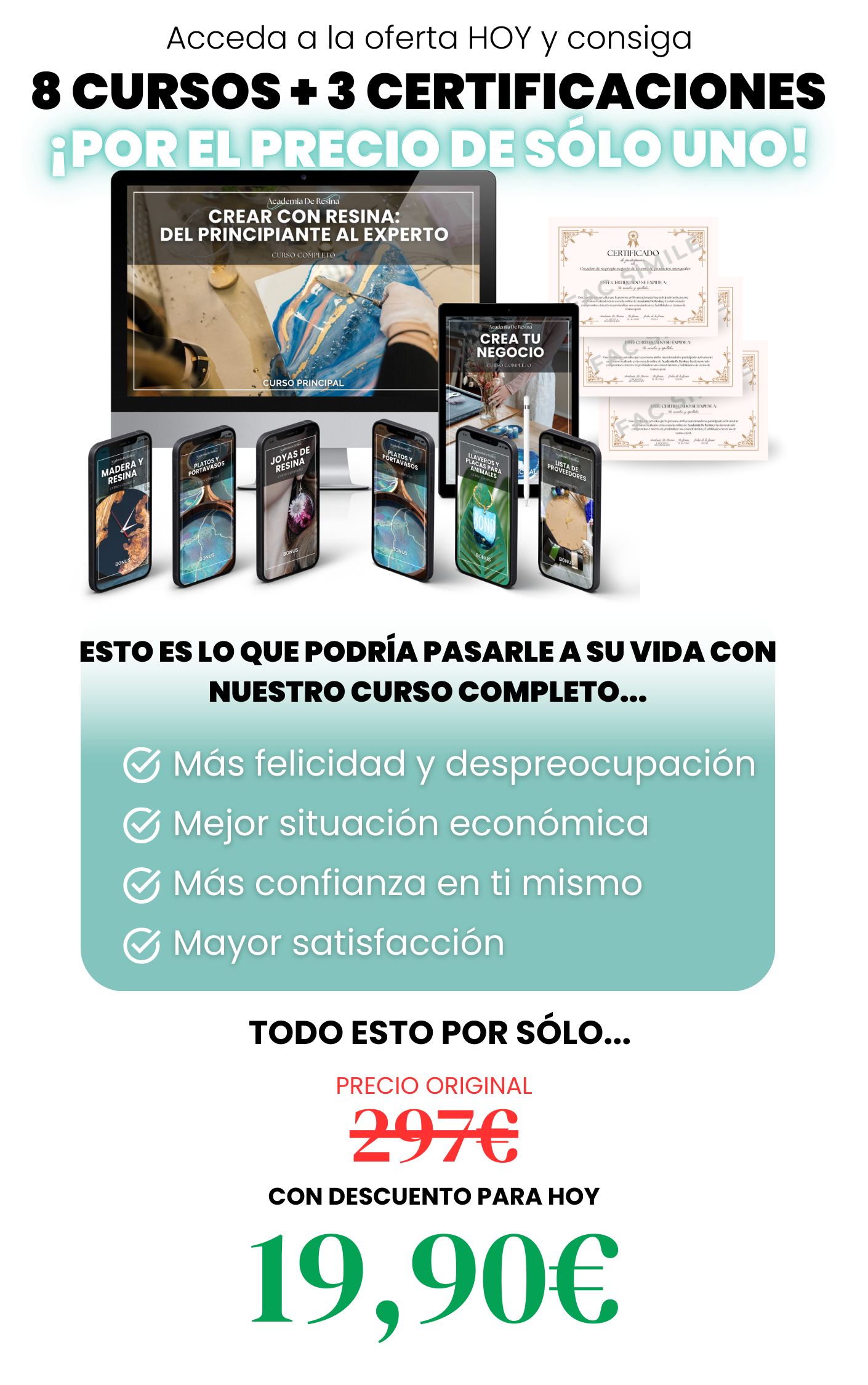 ¿QUÉ INCLUYE SI COMPRAS HOY EL CURSO COMPLETO DE ACADEMIA DE RESINA?